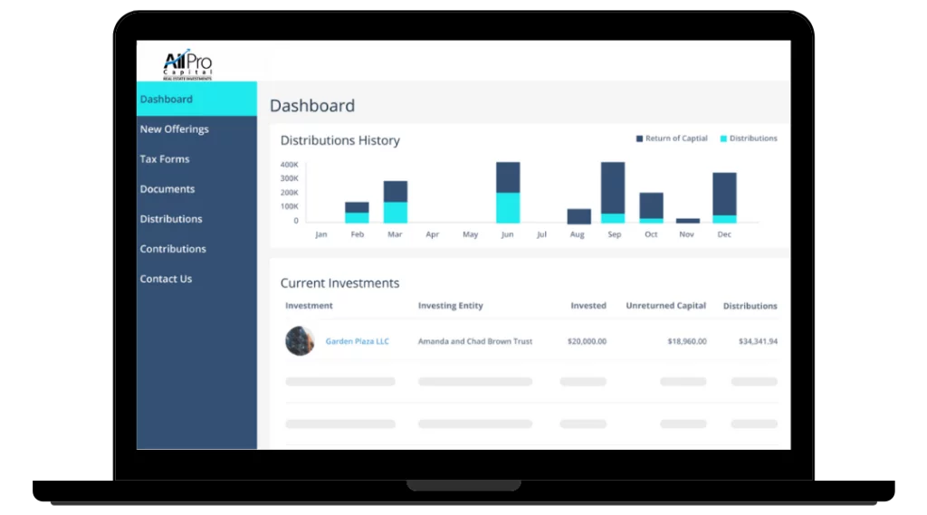 Once you’re up-and-running, you’ll have complete access to the investor portal. You can see distributions, balances, your documents (such as K-1s), and your current accrued balances.